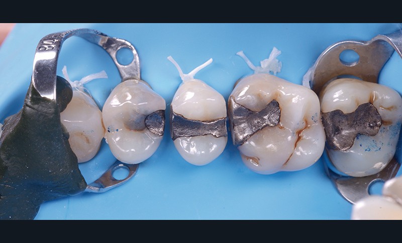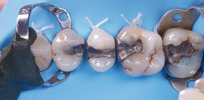 L’accès au collet des molaires est également régulièrement problématique, en raison de profils d’émergence et de contours radiculaires très variables. Dès lors, une première difficulté est de disposer d’un crampon dont le design est adapté à une anatomie cervicale spécifique, et une seconde sera d’assurer l’étanchéité au niveau de la concavité de la furcation, que la digue franchit, là encore et naturellement, de façon rectiligne. Posséder des crampons divers et mixer des techniques (crampon + ligature + téflon) au sein d’une stratégie réfléchie permet de résoudre la plupart…