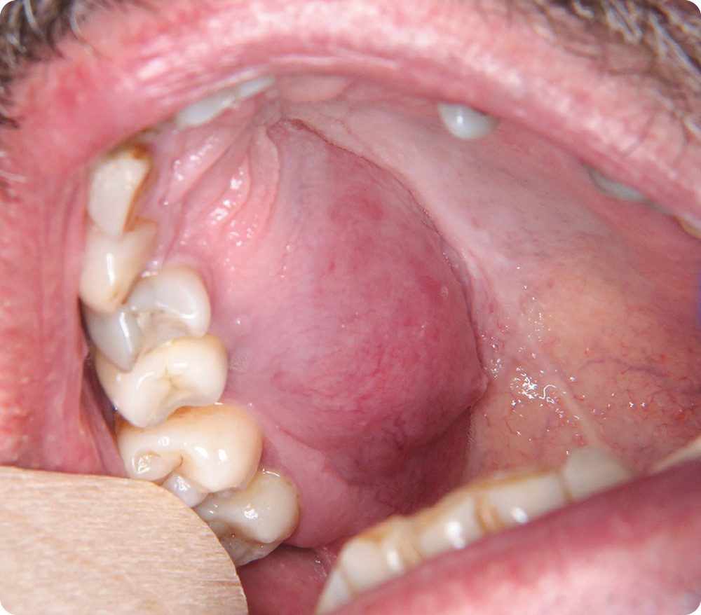 Patient adressé par son chirurgien-dentiste pour avis et prise en charge d’une lésion palatine présente depuis 3 mois.