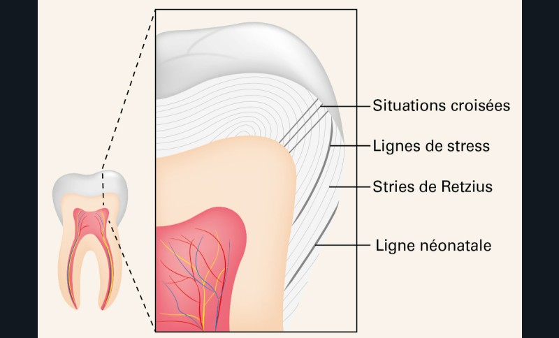 Après lecture de cet article, le lecteur sera capable de mieux comprendre certaines structures clés de l’émail permettant d’expliquer certains aspects biomécaniques. Une importance particulière est donnée à la signifiance des stries de croissance et d’éventuel(s) épisode(s) de stress physique ou psychologique (fig. 1) ainsi qu’à la jonction amélo-dentinaire (JAD) qui doit être considérée comme une entité à part entière et non pas « juste » comme une simple jonction entre deux tissus minéralisés extrêmement différents.