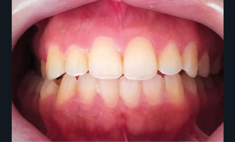 Le traitement consiste en une thérapeutique étiologique, à savoir : une motivation à l’hygiène bucco-dentaire et un débridement parodontal. Après une réévaluation parodontale à 15 jours, une thérapeutique chirurgicale est planifiée. Ainsi, une gingivectomie à biseau interne est réalisée (fig. 2). La réévaluation post-chirurgicale à 2 mois montre un allongement de la couronne clinique au niveau des dents concernées et une réduction de la hauteur de la gencive exposée lors du sourire (fig. 3).