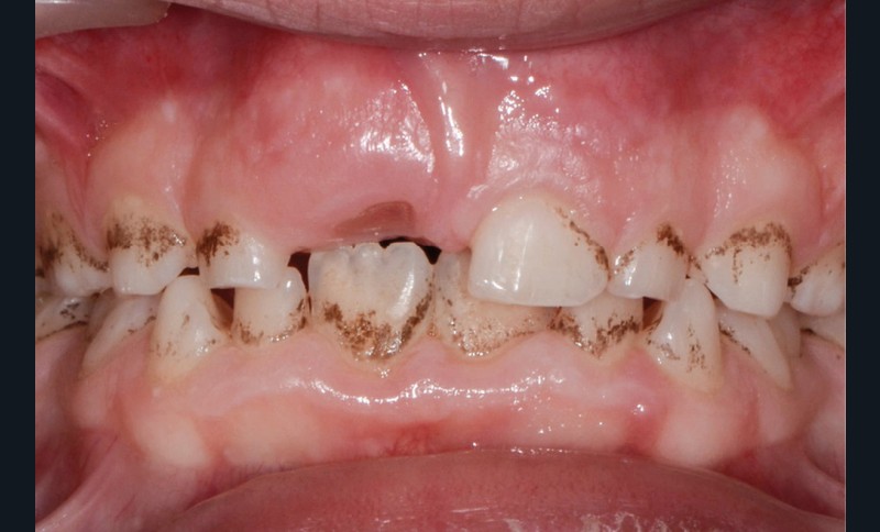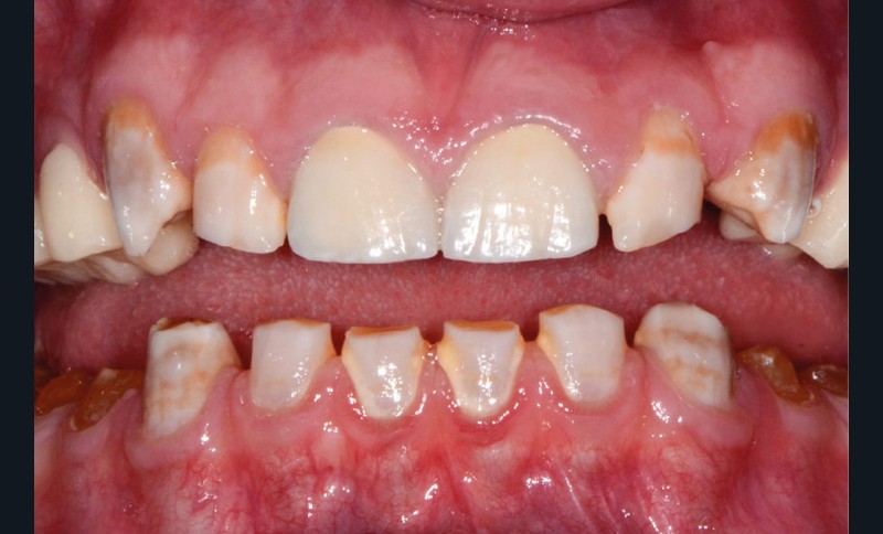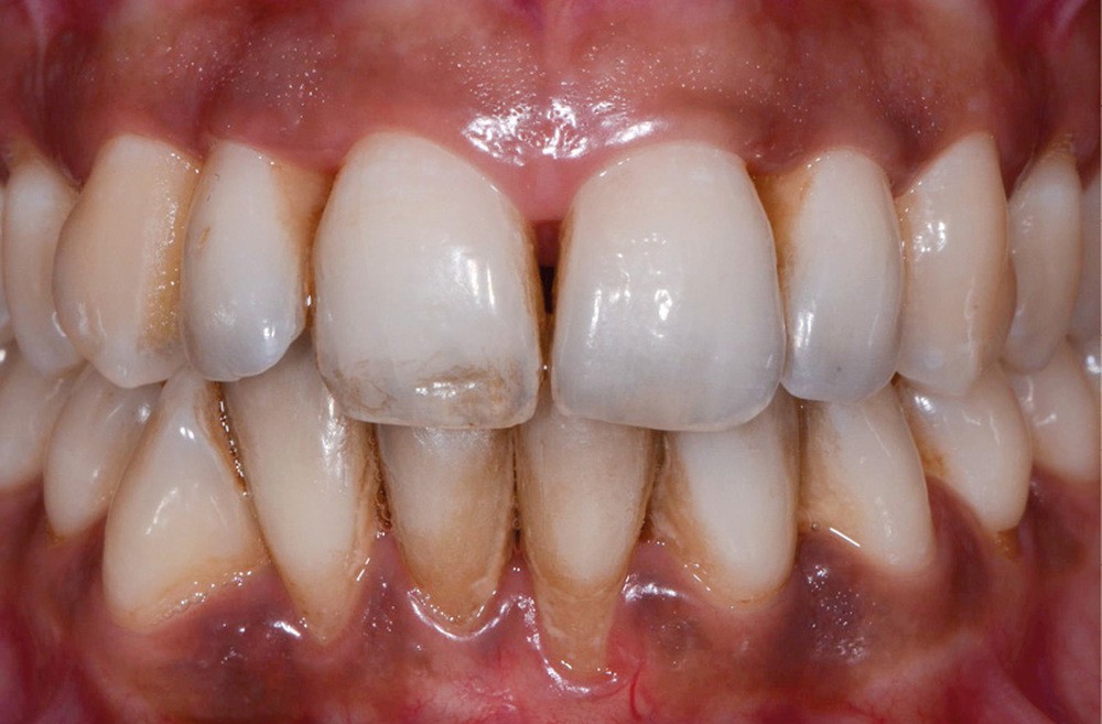 Elles sont causées par des agents colorants externes qui se déposent généralement sur la surface amélaire. Leurs origines sont diverses : alimentation (fig. 1b), tabac (fig. 1c), plaque bactérienne ou bactéries chromogènes (fig. 1d), ainsi que certains médicaments. La réalisation d’un aéropolissage en complément du détartrage initial est généralement suffisante pour éliminer efficacement ces colorations. Cependant, le patient doit être prévenu qu’en l’absence de modification de ses habitudes de vie, celles-ci reviendront [2, 4].