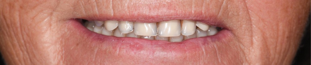 Une patiente de 65 ans consulte pour la perte d’adaptation de sa PACSI lors de la mastication. L’interrogatoire médical ne révèle aucune pathologie ni traitement médicamenteux. La patiente mentionne ne pas fumer et est sérieuse sur le plan prophylactique. Cependant, depuis quelque temps, elle se plaint d’une difficulté à mastiquer associée à une mobilité de sa prothèse et une usure des dents prothétiques (fig. 1a à e).
