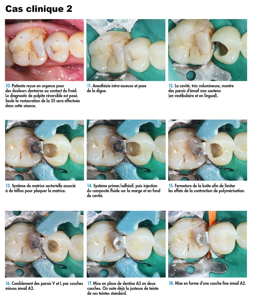 En outre, le recours à la mise en œuvre directe des composites, c’est-à-dire essentiellement par addition, offre la préservation tissulaire maximale [2, 3], un traitement en une séance, l’absence de provisoire et un coût moindre.