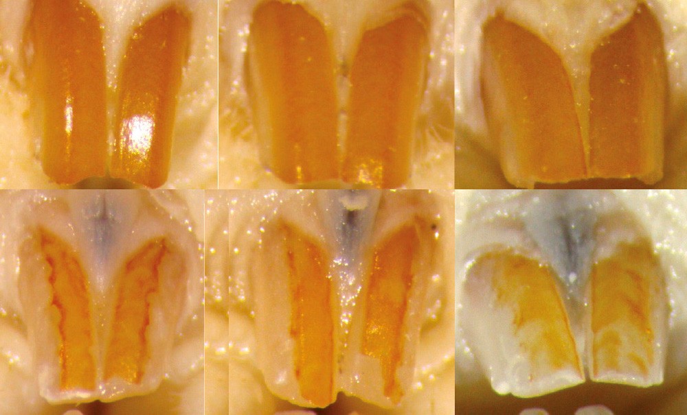 Chez l’Homme, la formule dentaire s’exprime au sein de deux dentures (temporaire et permanente) et est composée de dents de morphologies différentes avec, en avant, les incisives suivies des canines, puis des prémolaires et des molaires. La souris, quant à elle, ne possède qu’un jeu de dents (monophyodontie) et sa formule dentaire, contrairement à celle de l’Homme, n’est composée que de deux types de dents (trois molaires et une incisive par hémi-arcade) séparées par un espace sans dent appelé diastème. De plus, la souris possède des incisives à croissance continue ayant…