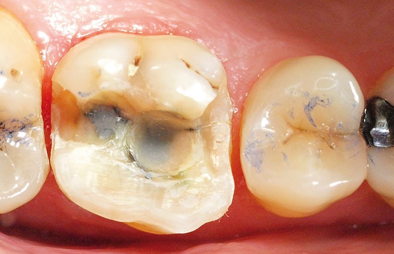 Voilà 6 mois, une patiente se présente à notre cabinet au motif d’une douleur récurrente sur le secteur molaire supérieur droit lors de la mastication. Une anamnèse rapide et cadrée est réalisée pour optimiser le temps passé et avancer les éléments diagnostiques. La patiente décrit une gêne ancienne, déclenchée essentiellement par la mastication. À l’auscultation, les examens endo-buccaux et radiologiques montrent une denture superbe avec très peu de soins, une hygiène buccale sans reproche, et des fonctions manducatrices saines [1] (fig. 1 et 2).