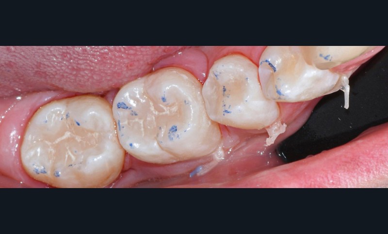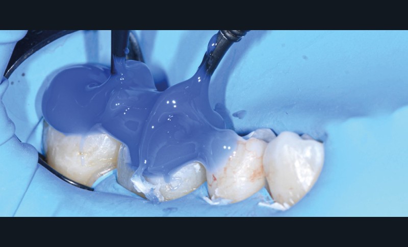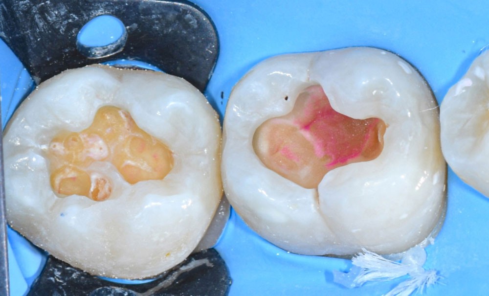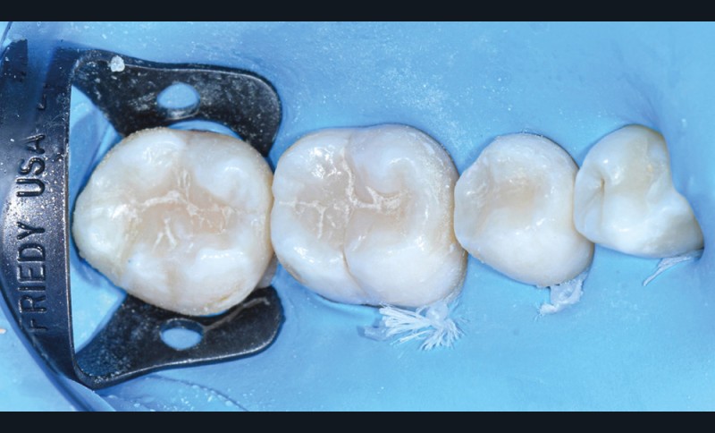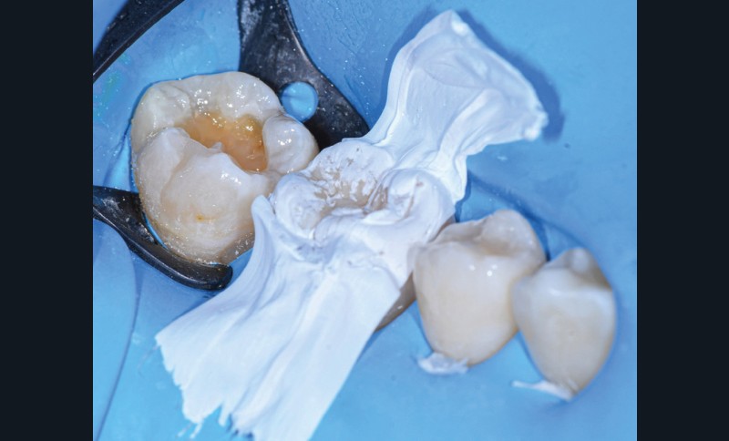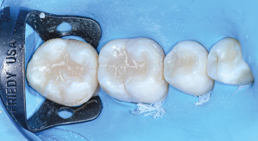 Il est tout à fait possible d’utiliser cette technique lorsque la cavité a atteint une paroi proximale. Il suffit alors de recréer d’abord le mur proximal manquant en résine composite, puis d’ajuster le tampon pour qu’il n’interfère pas avec ce dernier. La cavité de classe II se transforme alors en cavité de classe I [7].
