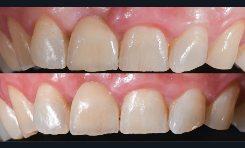 Le deuxième temps correspond à la pose de l’adhésif par un frottement prolongé de 20 à 45 secondes afin d’augmenter son infiltration au niveau de la dentine. Selon Rosa et al., les adhésifs de type MR3 ou Universels sont ici particulièrement indiqués car leur important potentiel adhésif garantit la pérennité de l’assemblage [15]. Dans le cadre du bridge cantilever, cette étape d’infiltration de l’adhésif est relativement raccourcie, car la préparation des tissus dentaires nécessaire à l’intégration de cette restauration sur la dent support ne concerne essentiellement que l’émail.