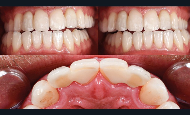Après la séance de pose des bridges, le suivi par des rendez-vous de contrôle doit être proposé au patient afin d’observer l’évolution de leur intégration parodontale et occlusale (fig. 7).