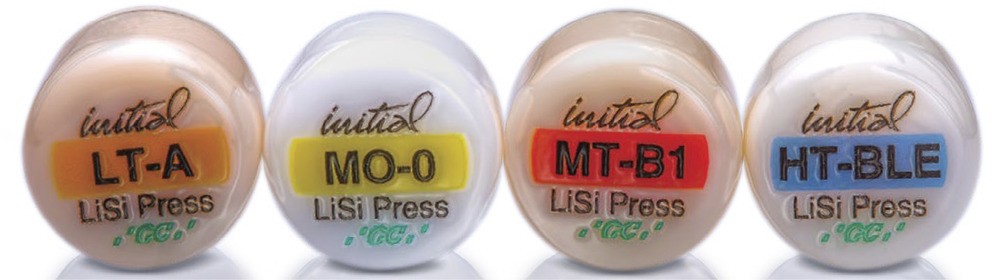 Les fabricants de céramiques renforcées au disilicate de lithium proposent généralement plusieurs degrés de translucidité (fig. 1a-b). Parmi ceux-ci, les translucidités MO (moyenne opacité) et HO (haute opacité) sont utilisés exclusivement avec une stratification cosmétique.