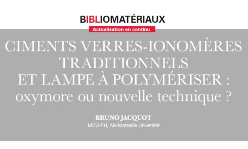 Bien que décrit depuis 1989 par Haywood et Heymann, l’éclaircissement externe ambulatoire, dont l’efficacité et l’innocuité sont démontrées par la...Ciments verres-ionomères traditionnels et lampe à polymériser : oxymore ou nouvelle technique ?