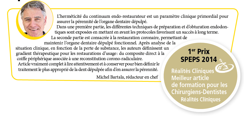 Le continuum endo-restaurateur : de l’obturation canalaire à la restauration coronaire