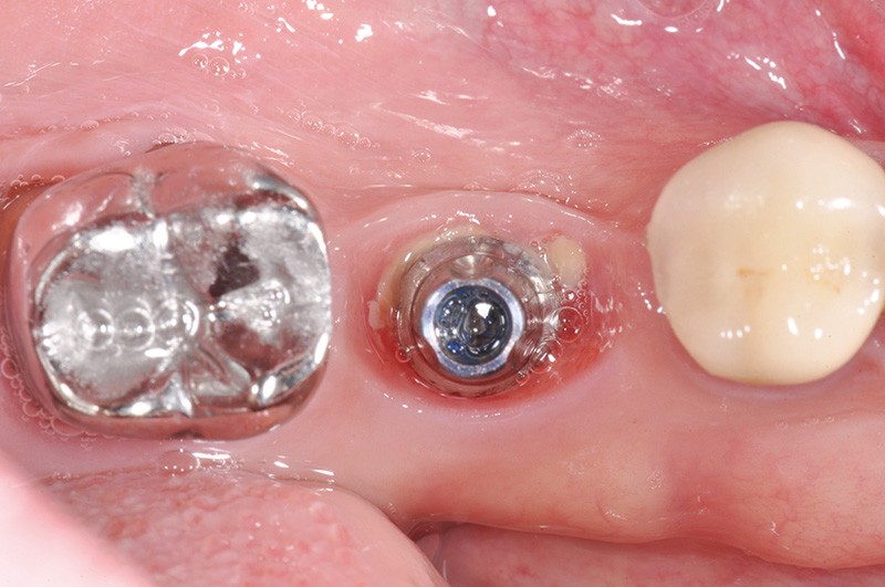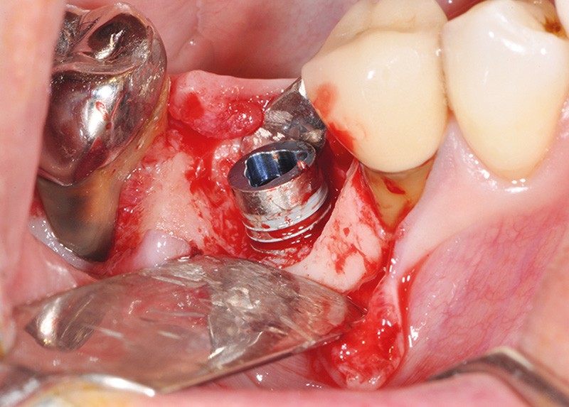 La stabilité des tissus mous autour des implants apparaît également comme un facteur très déterminant. L’absence de barrière kératinisée stable crée une mobilisation haute des tissus jusqu’au col implantaire. Cela a pour conséquence l’apparition de déhiscence gingivale, puis la disparition de l’os vestibulaire ou lingual.