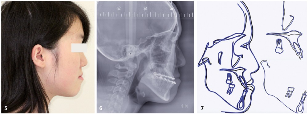 Sylvie se présente à l’âge de 15 ans avec une classe III squelettique (ANB -7,6°) d’origine maxillaire et mandibulaire sur un schéma facial à tendance hyperdivergent (FMA 31°) (fig. 1).