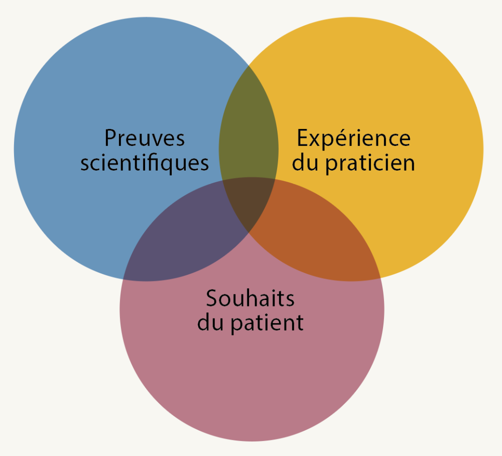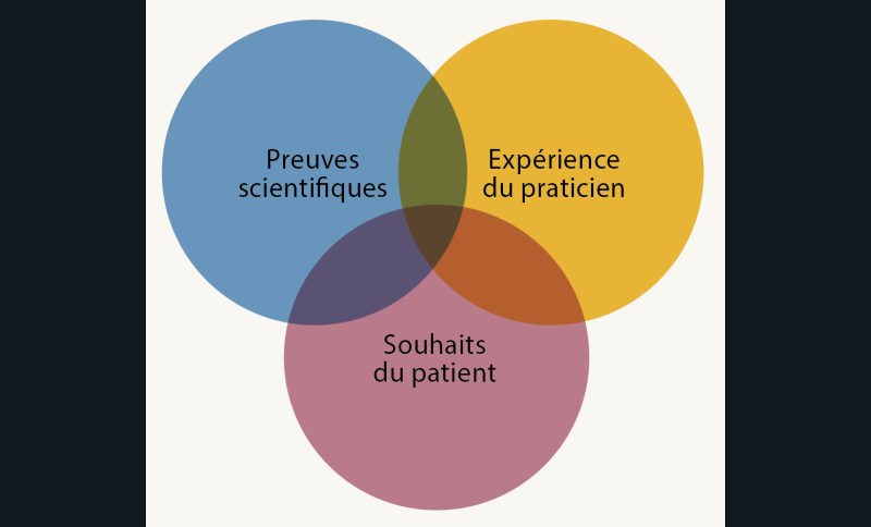 Une fois le diagnostic posé, le plan de traitement devra intégrer les meilleures preuves scientifiques disponibles, les possibilités techniques du praticien et les souhaits personnels du patient [1] (fig. 1).