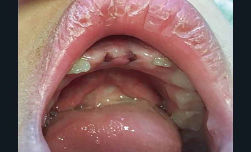 ► L’examen exo-buccal ne montre aucune lacération des lèvres ni œdème ou hématome.