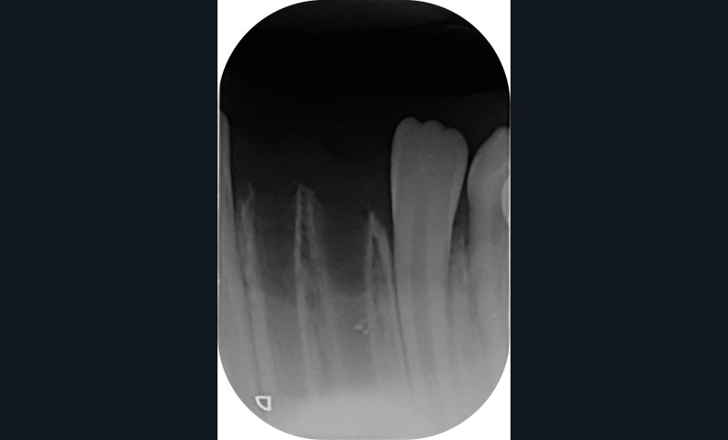 ► La radiographie rétro-alvéolaire réalisée en examen complémentaire montre deux alvéoles vides sans présence de débris (fig. 3). Il ne semble pas utile de compléter les examens par une radiographie occlusale qui doit être réalisée en cas de suspicion d’intrusion, de fracture de racine, de fracture alvéolaire ou de fracture de la mâchoire.