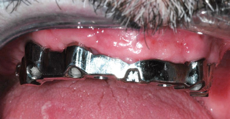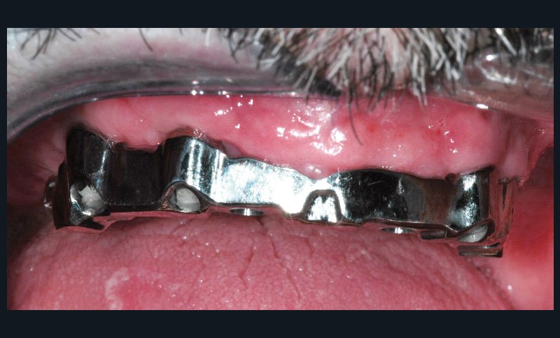 Dans la semaine suivante cette réhabilitation, le patient consulte et se plaint fortement d’un “décrochage bruyant et incessant” de sa prothèse mandibulaire, particulièrement au cours des repas.
