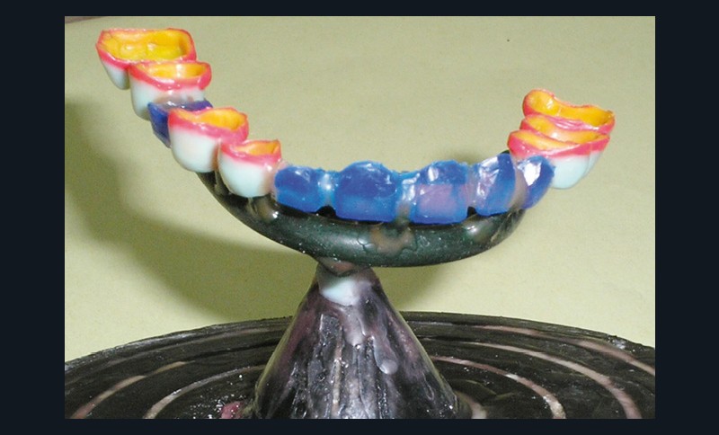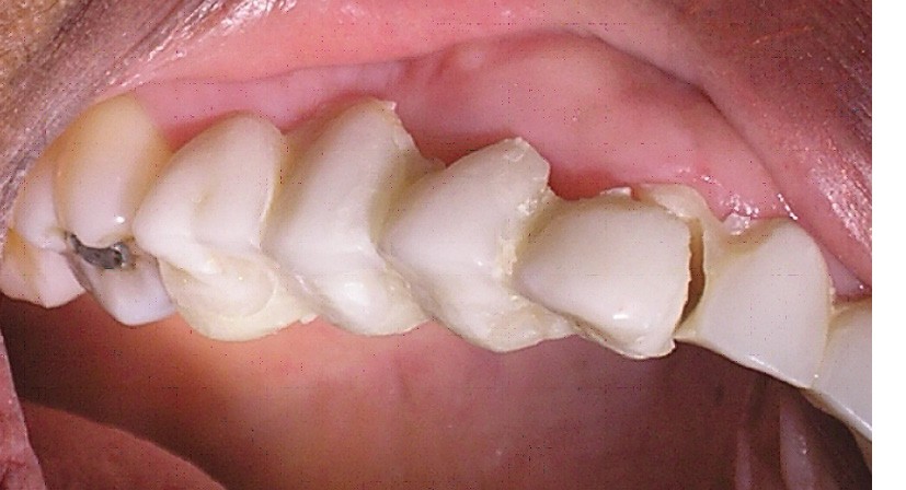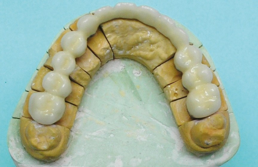 D’où la nécessité d’augmenter le nombre de piliers, d’assurer une répartition topographique plus équilibrée, d’accroître la valeur des piliers à l’état de racine. Par conséquent, les 16 et 26 sont ajoutées aux piliers déjà préparés pour obtenir sept piliers (quatre à droite et trois à gauche) pour six intermédiaires de bridge.