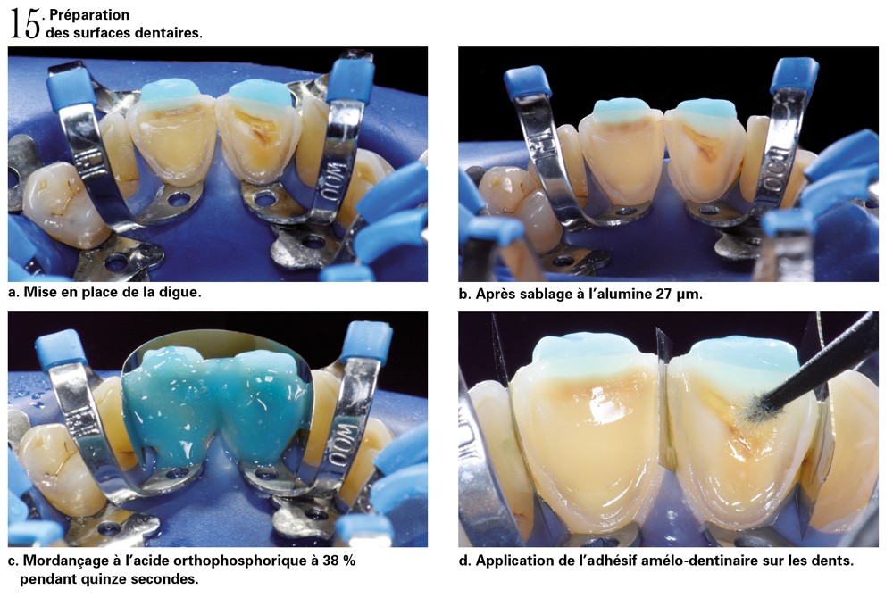 – anesthésie loco-régionale, application de la résine bleue, préparation des dents : 15 minutes ;