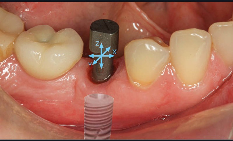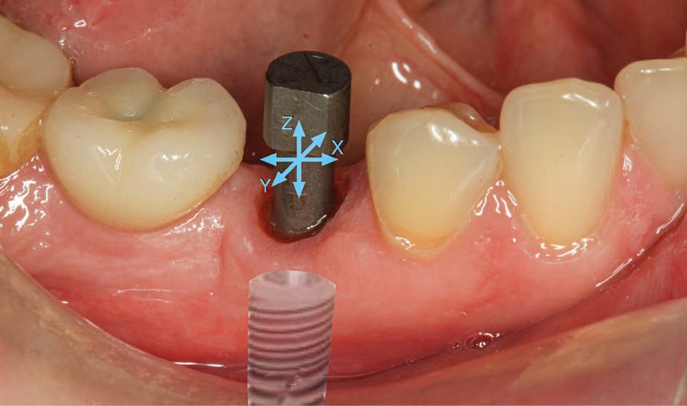 Quelle que soit la technique d’empreinte utilisée, analogique ou numérique, les objectifs sont identiques : enregistrer l’environnement muqueux péri implantaire et situer la position de l’implant dans les trois plans de l’espace. Pour cela, une pièce spécifique (transfert) est connectée à l’implant pour en donner l’orientation et la profondeur (fig. 1).