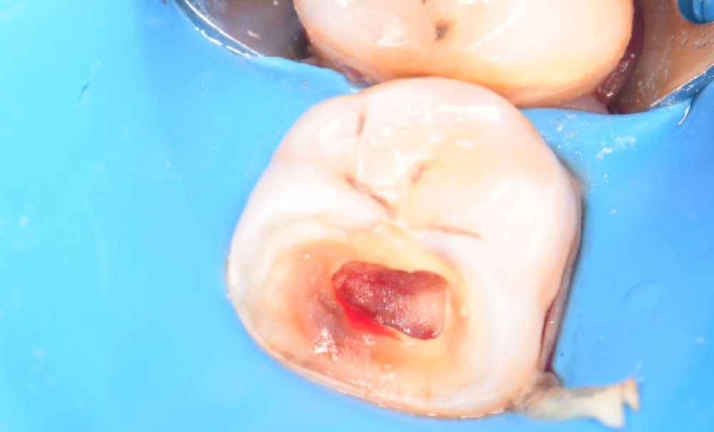 Dès les premiers stades d’infection bactérienne, des toxines bactériennes sont libérées et progressent vers la pulpe. La réponse immunitaire et le remaniement dentinaire sont rapides, mais, si rien n’est fait, le tissu dentaire est déminéralisé et la progression bactérienne atteint la dentine et augmente l’état inflammatoire de la pulpe, provoquant une augmentation de la pression intrapulpaire. Un emballement se produit à ce stade, les capillaires se retrouvent comprimés et sténosés (ischémie) et la nécrose pulpaire se propage. La réponse nerveuse, quant à elle, se manifeste par une allodynie (diminution du seuil d’activation) et une hyperalgie.