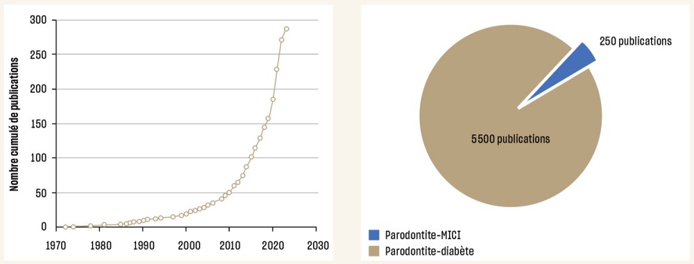 L’axe oro-intestinal est un domaine émergent en médecine parodontale et l’interaction entre la parodontite et les maladies inflammatoires chroniques de l’intestin (MICI) en est le principal sujet (fig. 1).
