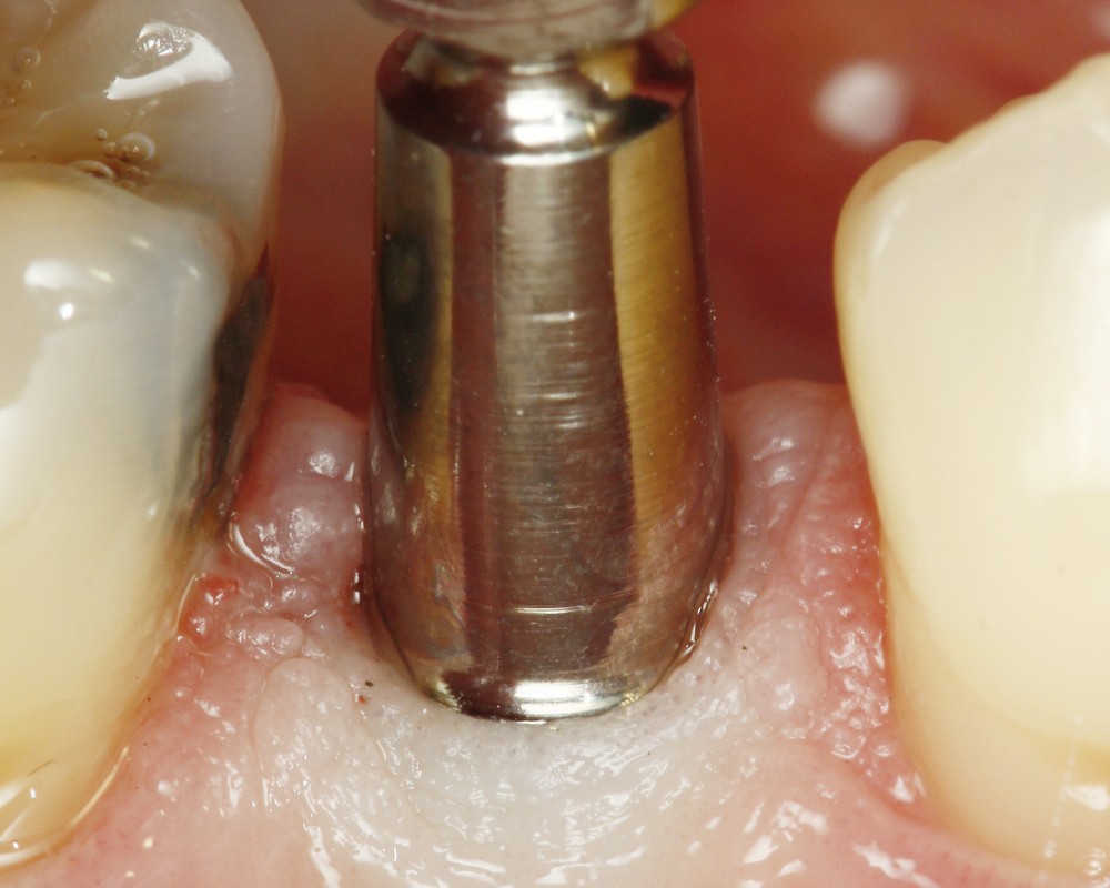 La réalisation d’une prothèse unitaire sur implant est aujourd’hui devenue un acte courant de dentisterie. A partir d’éléments diagnostique, clinique et radiologique, la première étape consiste en la mise en place chirurgicale de l’implant. De la position de l’implant dépend l’intégration esthétique et fonctionnelle de la future prothèse. Une fois l’ostéointégration obtenue, la prothèse est réalisée après empreinte de la position de l’implant. La couronne est alors scellée sur un pilier, ou transvissée directement sur l’implant.