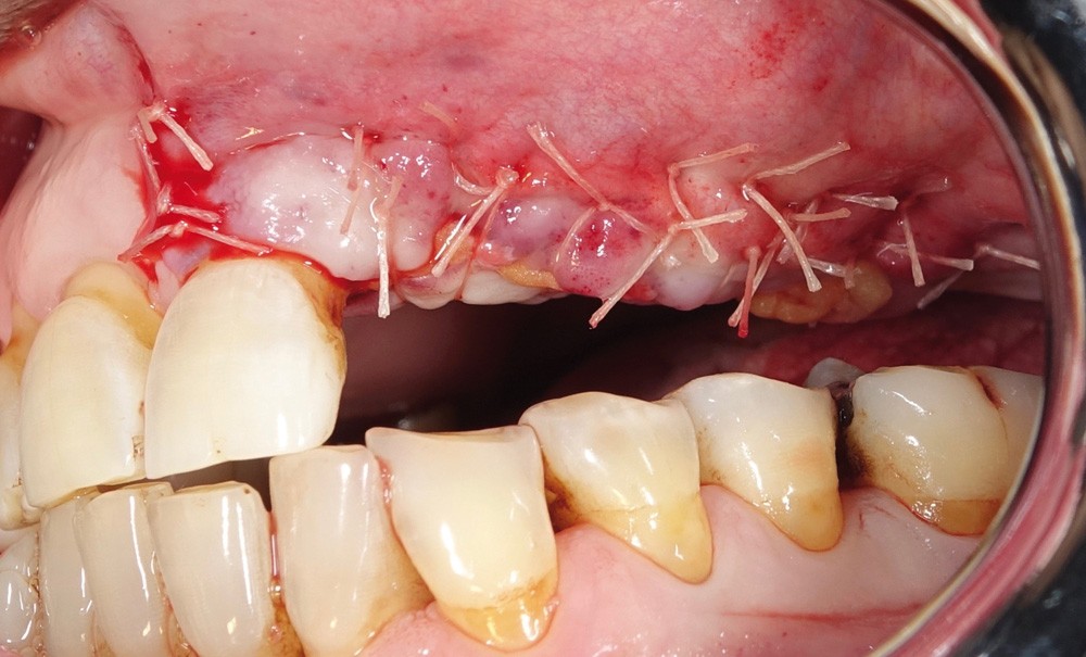 Parmi les atrophies osseuses, le diagnostic de défauts verticaux osseux est assez fréquent lors de consultation en vue de chirurgie implantaire. Leur correction est exposée à un plus grand risque d’échec que les augmentations osseuses horizontales [3] du fait du risque plus important de résorption et d’exposition. Dans les techniques d’augmentation osseuse, l’os autogène reste le matériau de référence en raison de ses propriétés ostéoconductrices et ostéogéniques. L’os allogénique donne aussi des résultats intéressants, mais il existe peu d’études à long terme sur la stabilité du volume greffé [4].