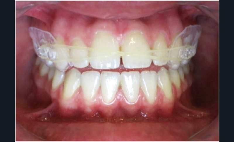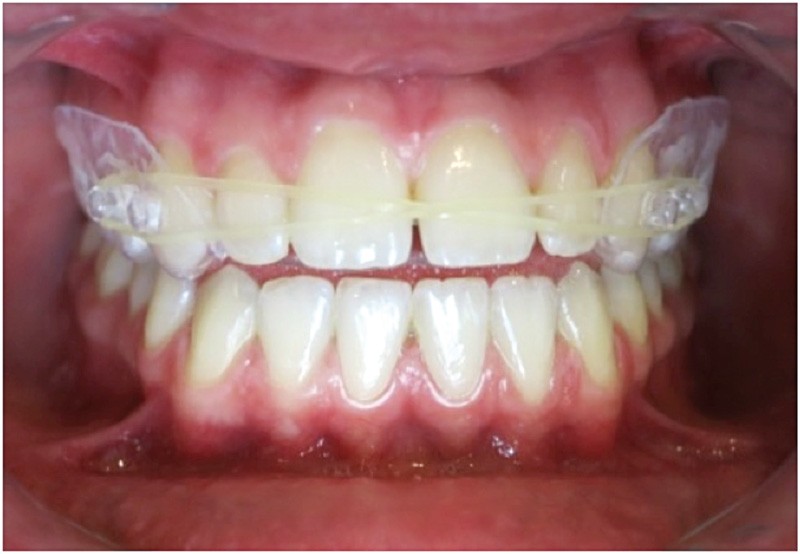 La gouttière transparente avec un élastique (fig. 1), est moins visible, donc mieux acceptée par les patients et son port n’est pas indispensable en permanence. Toutefois, il nécessite une implication du patient : plus il la porte, plus vite le problème sera réglé (fig. 2 et 3).