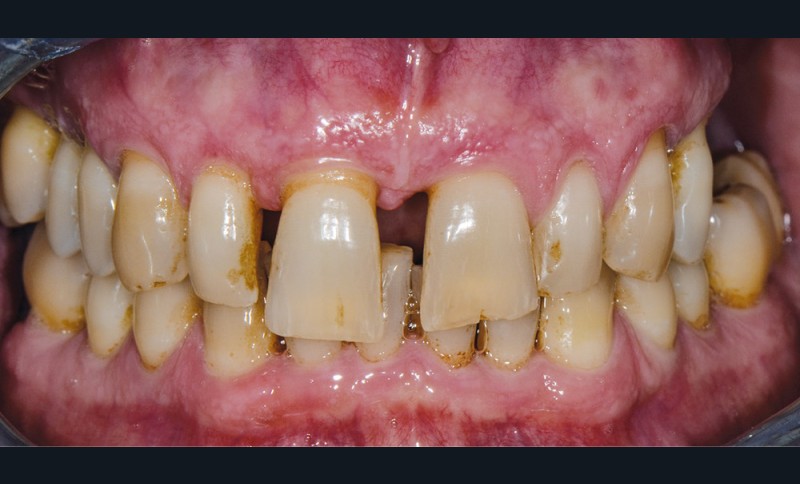 Ainsi, lorsqu’un patient arrive avec une maladie parodontale, celle-ci doit d’abord être traitée, que ce soit par un traitement non chirurgical ou chirurgical, stabilisée (afin que le parodontiste puisse donner son « feu vert » à l’équipe orthodontique), et que les déplacements dentaires commencent dans un parodonte sain et stabilisé (fig. 1 et 2).