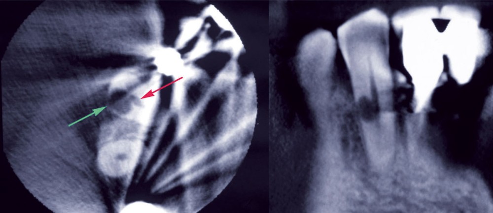 A l’image de l’ensemble des résorptions, un processus d’activation des cellules ostéoclastiques [2] est initié dans la région cervicale, entraînant une perte de substance dentaire (cément, dentine). Le facteur déclenchant reste la perte d’intégrité du cément qui ne permet plus une protection de la dentine contiguë. Cette brèche cémentaire occasionne une réparation où la balance ostéoblaste-ostéoclaste se voit déporter vers l’activité clastique. Cette balance est sous l’influence de plusieurs facteurs chimiques (hormones, cytokines, facteurs de croissance). La nature même de cette résorption n’est pas encore tranchée selon les auteurs qui la décrivent comme inflammatoire seule, inflammatoire initialement puis infectieuse voire infectieuse initialement puis inflammatoire [3].
