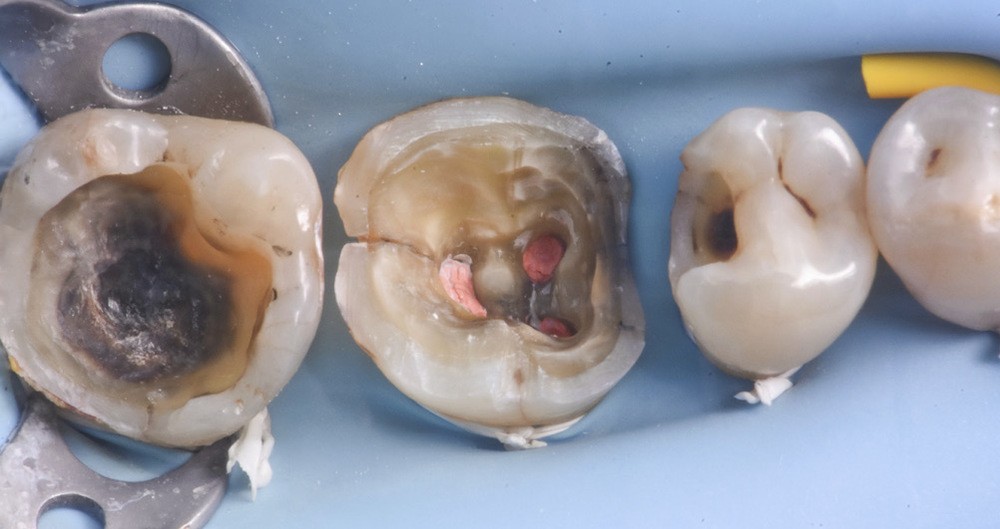 Il n’a pas été prouvé que l’absence de la pulpe affecte ou non les propriétés mécaniques intrinsèques des tissus dentinaires et amélaires [1]. Cependant, l’expérience clinique montre que les dents dépulpées présentent plus de fractures et surtout des fractures spécifiques, quelle qu’en soit la cause. On comprend aisément que la résistance de la dent dans son ensemble sera affectée dès le début des soins du fait de la perte de substance liée à la carie et la réalisation de la cavité d’accès. Plotino et coll. ont montré, dans une étude in vitro [2], les variations de résistance à la fracture de dents dépulpées en fonction du design de la cavité d’accès : classique, conservatrice ou ultra-conservatrice « ninja ». Les dents intactes présentent bien évidemment une plus grande résistance à la fracture. Cette étude montre par ailleurs que la cavité d’accès traditionnelle est plus fragilisante que les cavités d’accès conservatrices.