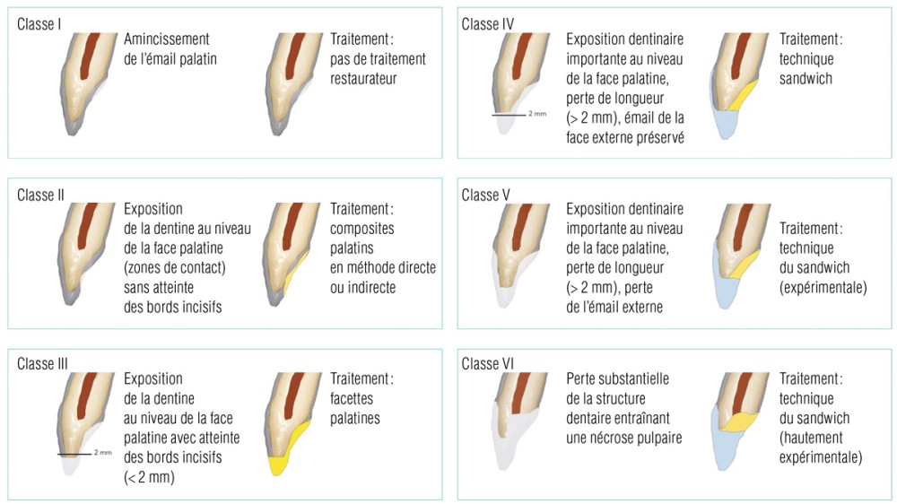 Les érosions dentaires peuvent trouver différentes étiologies, exogènes (habitudes alimentaires acides : sodas, jus de fruits…) ou endogènes (reflux gastro-œsophagien, boulimie/anorexie associés à des vomissements provoqués et répétés) [2].