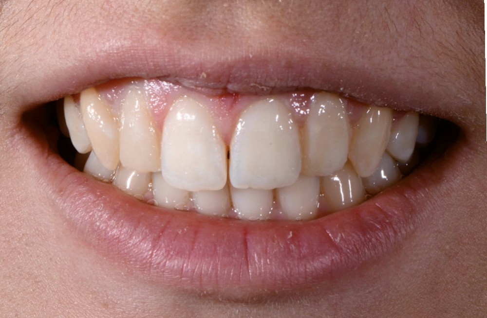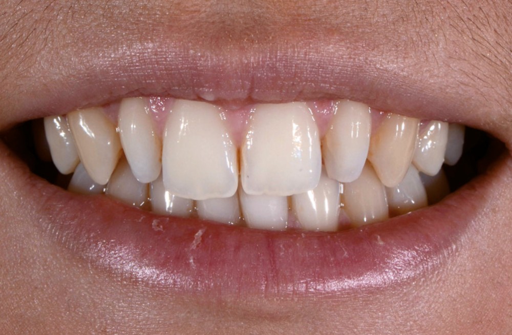 Une patiente de 24 ans a été reçue en consultation au CHU de Bordeaux, se plaignant de son sourire, en particulier de ses incisives latérales maxillaires riziformes (fig. 1 et 2). Elle ne présentait aucun antécédent médical ni allergie médicamenteuse.
