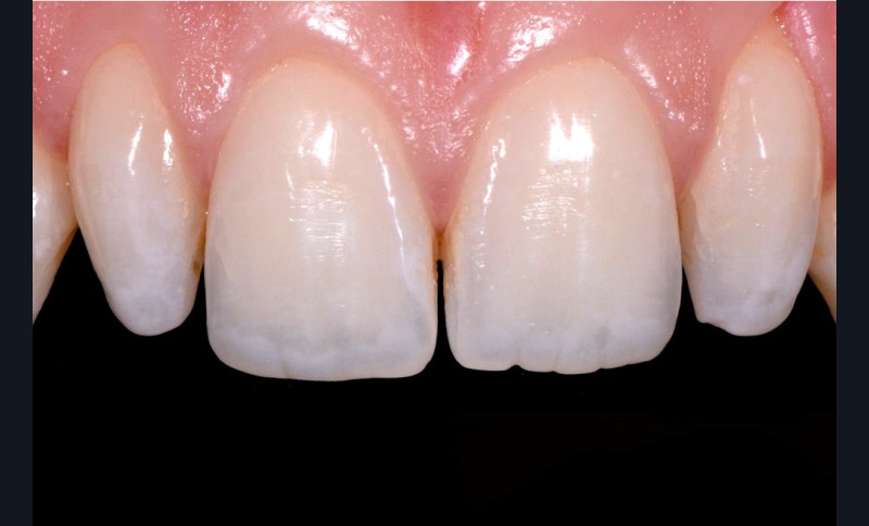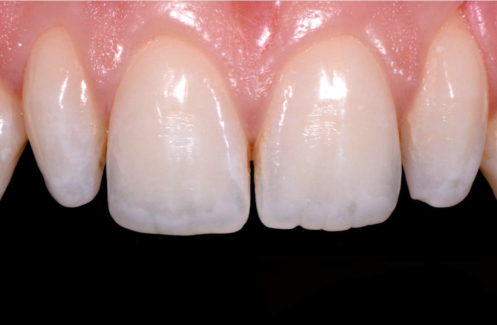 La patiente étant limitée d’un point de vue financier, la solution de restauration par facettes en céramique a été exclue. Nous avons ainsi décidé de réaliser des facettes directes en composite par technique de stratification, en suivant les concepts de la dentisterie invasive a minima.