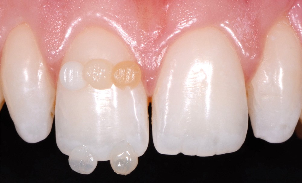 Grâce à la technique des boutons de composite, les teintes Light Enamel et Medium…