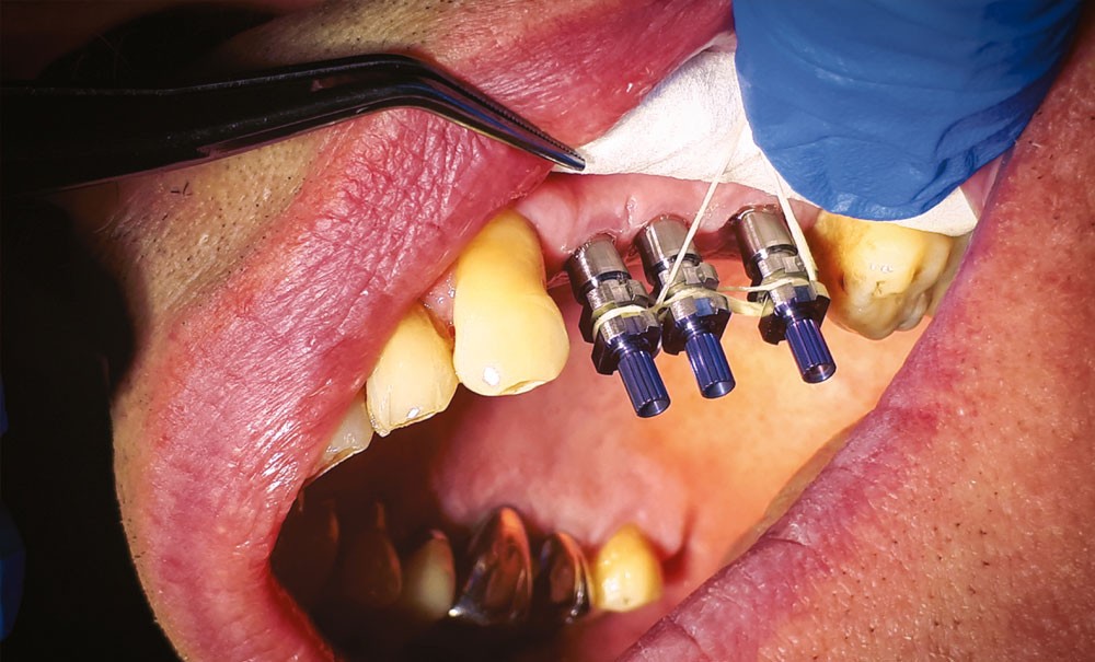 La phase d’ostéointégration de 6 mois suivant la pose d’implants ayant été respectée, la phase prothétique peut débuter.