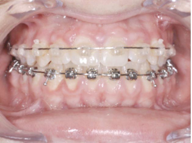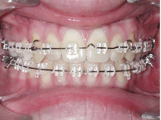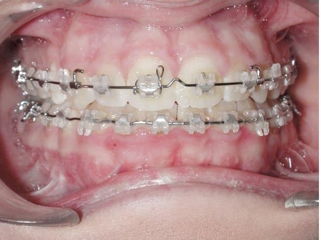 Plus l’attache est rigide (en céramique sans point de rupture ou métallique non déformable avec une porte rigide) et le traitement de sa base est très rétentif, plus sa dépose est difficile avec un risque important d’endommagement de l’émail surtout quand la colle utilisée est trop performante en termes d’adhérence et de propriétés mécaniques (fig. 2a,b).