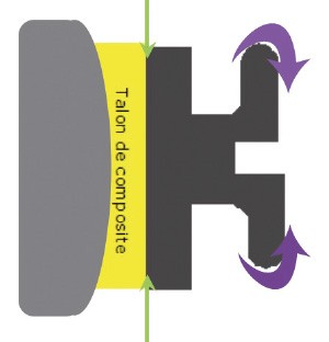 Si l’attache est métallique et déformable ou céramique avec un point de rupture, nous avons plus de liberté dans le choix de la colle quel que soit le traitement de la base de l’attache (fig. 1a, b).