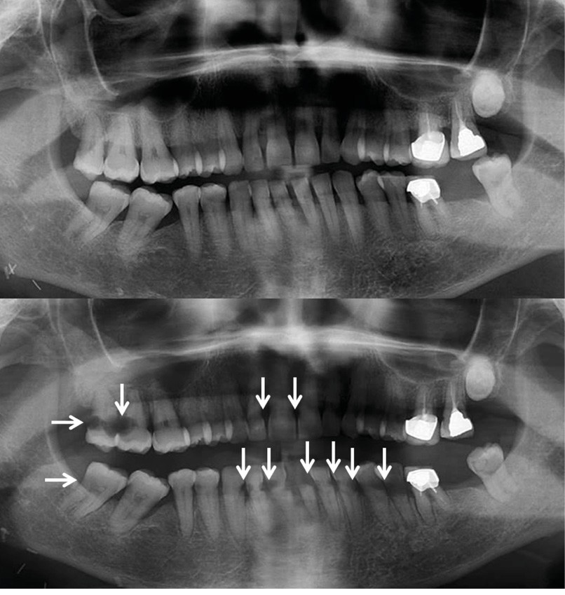 La probabilité et la gravité de ces effets indésirables dépendent d’un certain nombre de facteurs, comme la dose totale de radiations administrées, la durée de l’irradiation, et les parties de la tête et du cou concernées. Au niveau de la cavité buccale, les toxicités associées à la radiothérapie incluent l’altération du renouvellement des muqueuses de la cavité buccale, la modification de la production et de la qualité de la salive, provoquant une hyposialie ou asialie, une modification de la flore buccale et une altération du goût (fig. 1 et 2). Tous ces effets indésirables jouent un rôle fondamental dans la dégradation de l’état bucco-dentaire et ont des impacts directs sur de la qualité de vie du patient [3-5].