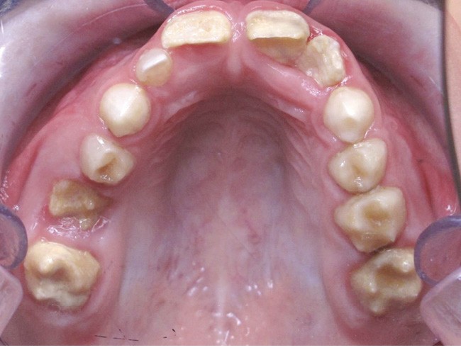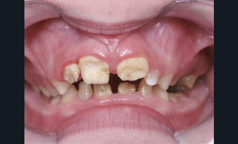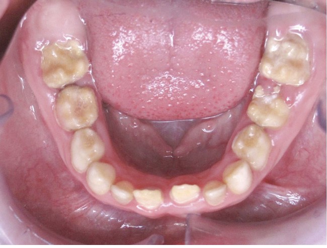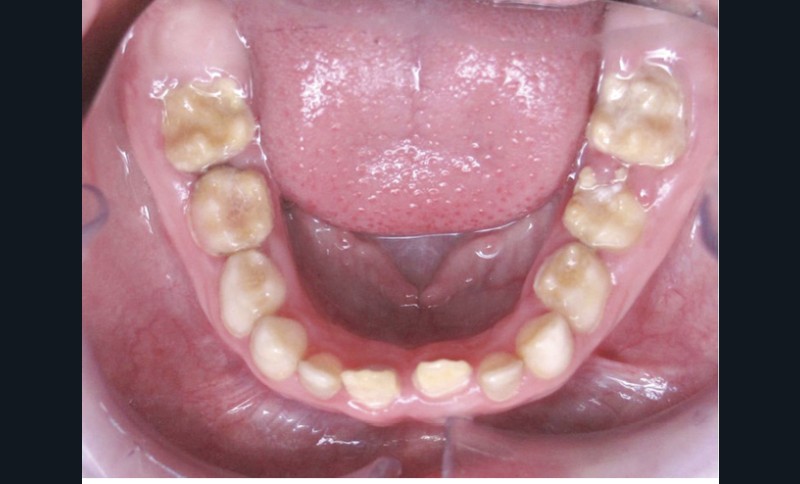 Selon de nombreuses études, l’anomalie occlusale la plus fréquemment retrouvée en association avec les AI est l’infraclusion antérieure, puisqu’elle est retrouvée chez 22 à 64 % des patients présentant cette affection, et encore plus chez les femmes [2,8,13-19]. Cette anomalie touche tous les types d’AI mais à des degrés très divers. Son incidence semble élevée dans les formes hypominéralisées, moindre dans les formes hypoplasiques et nettement moindre dans les formes hypomatures [8,17,18]. La sévérité de l’atteinte amélaire ne semble pas corrélée avec la présence ou l’intensité de cette malocclusion [17].