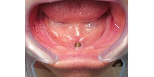 Dans le cas clinique présenté ci-dessous, le choix du recours à un seul implant symphysaire n’a pas été imposé par contraintes financières, mais anatomiques.