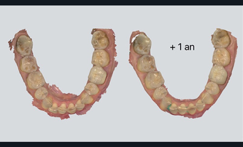 Au contraire, lorsque l’usure atteint des stades avancés sur le plan clinique, il convient d’intervenir pour restaurer les fonctions, éliminer les sensibilités et améliorer l’esthétique. Le consensus thérapeutique européen fait clairement référence à l’utilisation des techniques additives, en composite ou en céramique, associées à des préparations minimalement invasives et adhésives [5].