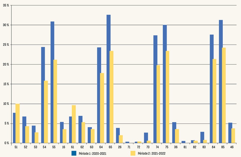 Méthode : Une étude comparative observationnelle transversale a été réalisée au niveau départemental pendant deux années scolaires : 2020-2021 et 2021-2022. Deux actions ont été menées au cours des interventions : un atelier de prévention sur la santé orale et un dépistage bucco-dentaire. Le consentement écrit des parents a été obtenu en amont. Les caries sur dents temporaires ou permanentes ont été évaluées en utilisant les indices caod et CAOD. Les autres variables mesurées étaient le sexe, le besoin de soins, l’état dentaire et l’hygiène bucco-dentaire. Le test de Mann-Whitney pour les variables quantitatives et le test du Chi deux pour les variables qualitatives ont été effectués, avec un seuil de signification fixé à 5 %.