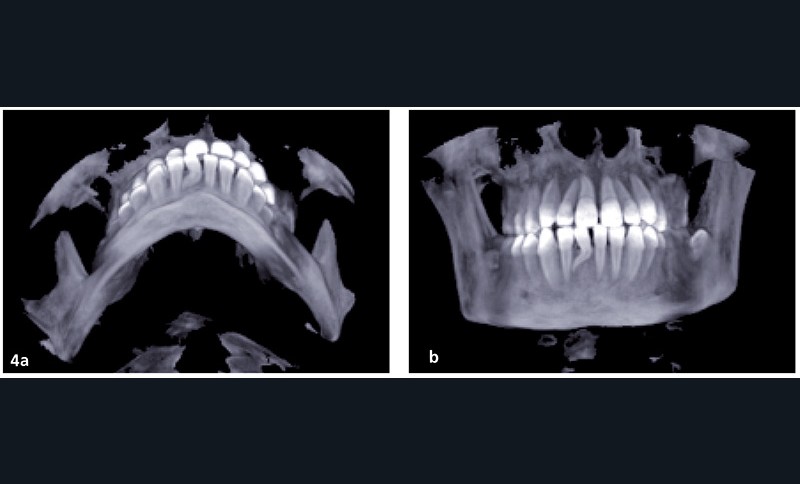 L’objectif est de rééquilibrer l’occlusion dentaire en réalisant des compensations dento-alvéolaires sans modifier le squelette. La chirurgie maxillo-faciale est écartée (fig. 3 et 4).