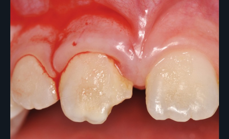 La nécrose pulpaire d’une dent permanente immature qu’elle soit d’origine carieuse ou traumatique revêt des aspects thérapeutiques plus complexes que la réalisation d’un traitement endodontique initial sur dent mature. Environ 25 % des enfants sont victimes de traumas dentaires (fig. 1) (1) aboutissant principalement à une rupture du paquet vasculo-nerveux de la dent traumatisée au niveau foraminal ou de la fracture dentaire.