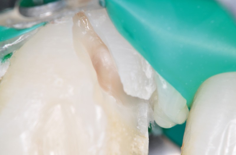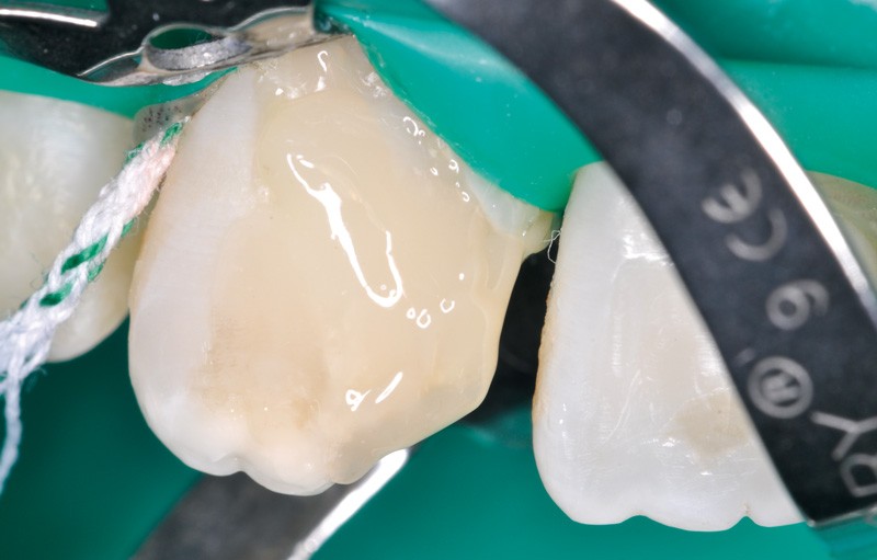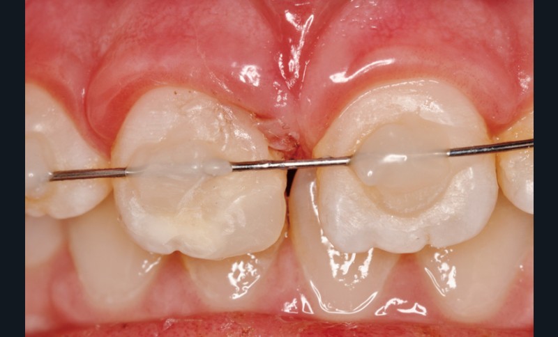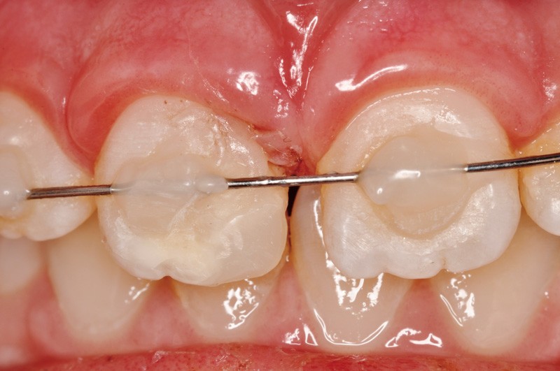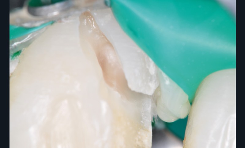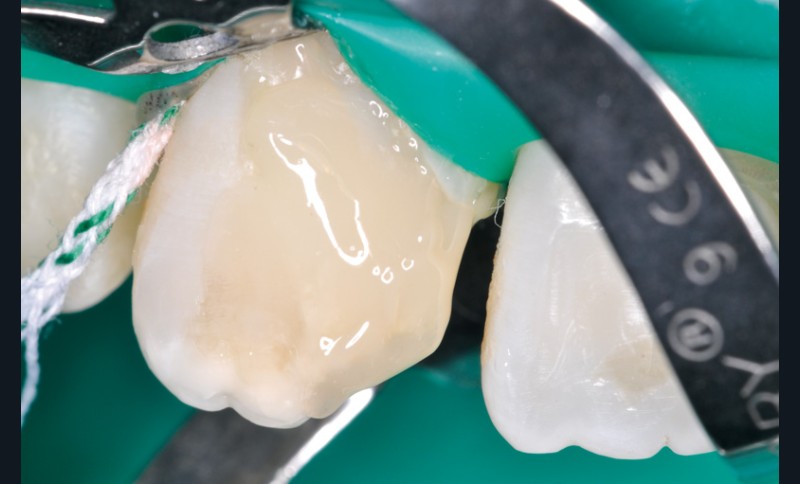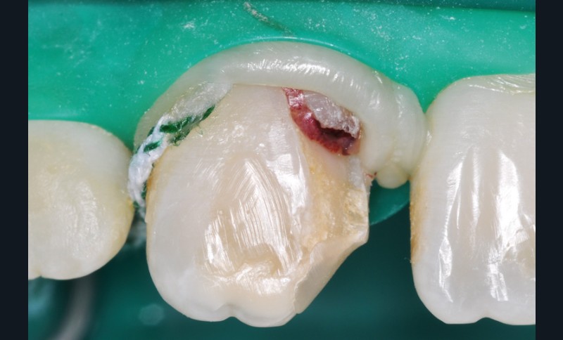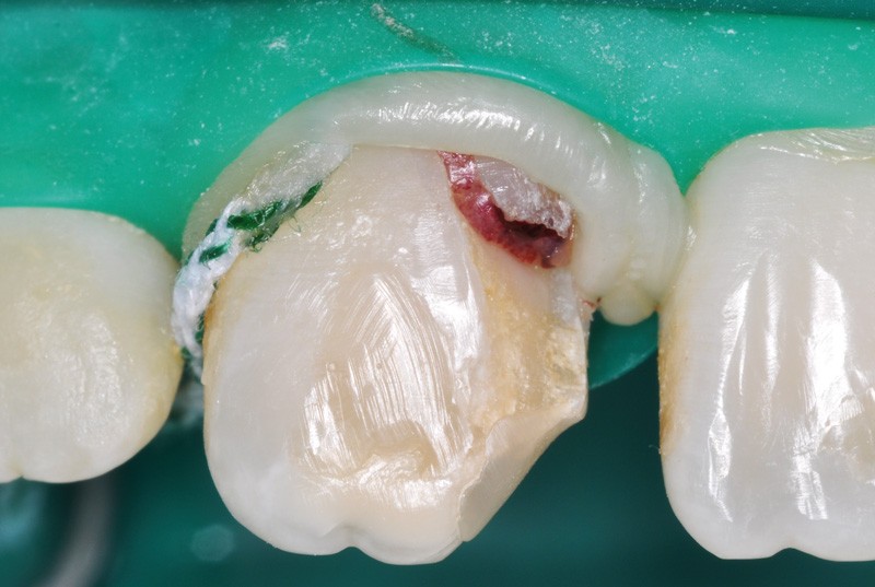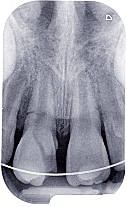 a à d Jeune patiente âgée de 8 ans, adressée suite à un traumatisme survenu 3 semaines auparavant, pour l’extraction de sa 21. La vue clinique montre un saignement ligamentaire, une mobilité coronaire et une fracture coronaire amélodentinaire longitudinale partant de l’angle mésial et se poursuivant en direction radiculaire sous-gingivale (a). Un test de vitalité positif indique que la dent est vitale, la radiographie permet de poser le diagnostic de fracture coronoradiculaire, et d’objectiver l’immaturité radiculaire (stade 8 de Nolla) (b). Une contention est mise en place et la plaie dentinaire coronaire est scellée au mieux par collage afin de limiter le risque d’une complication infectieuse (c). A 15 jours la dent est vivante et aucune complication n’est apparue (d). La patiente est revue après 3 mois pour déposer la contention, le test de vitalité est positif, et la radiographie de contrôle montre une apexogenèse en cours (e). Cependant la gencive s’est invaginée dans le trait de fracture (f). La zone est débridée sous microscope (g) puis scellée et reconstituée à l’aide d’un adhésif SAM et d’un composite fluide (h). Le contrôle radiographique à 6 mois est satisfaisant (i). Ce cas clinique illustre le fort potentiel des pulpes jeunes et du ligament alvéolodentaire à résister aux agressions et à assurer les fonctions dentinogénétiques et l’édification radiculaire.
