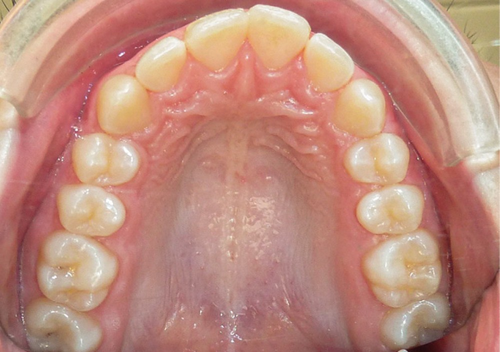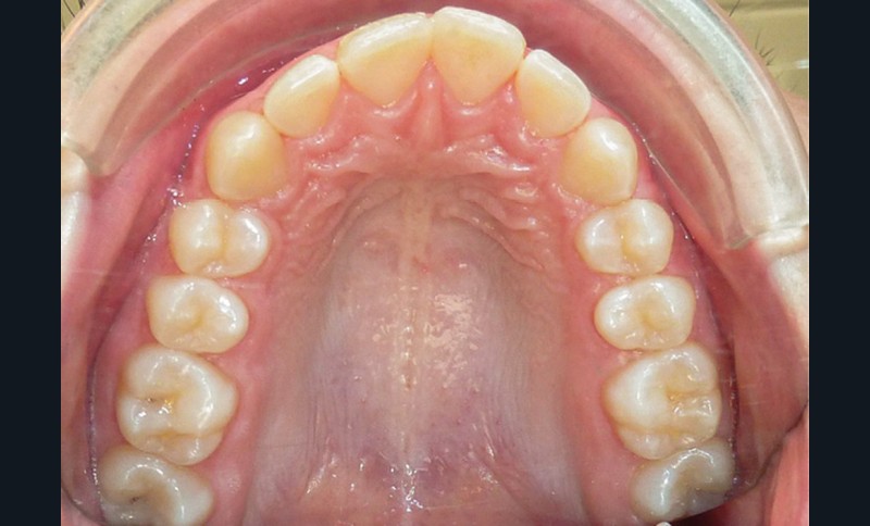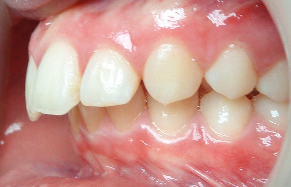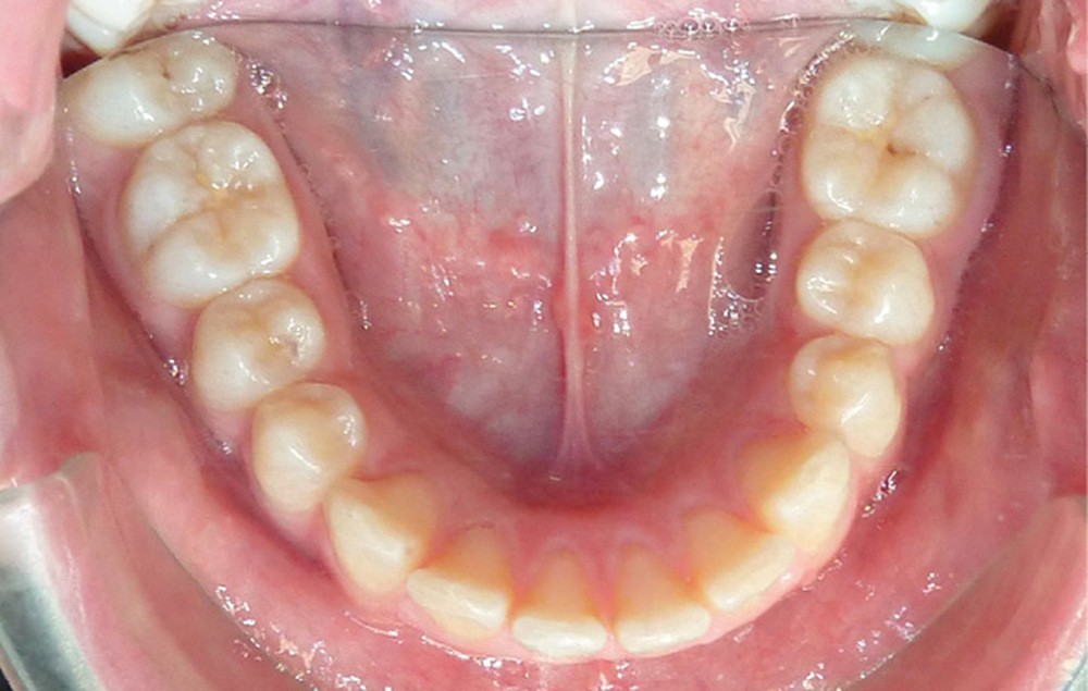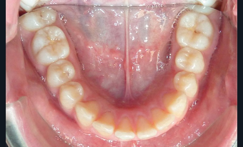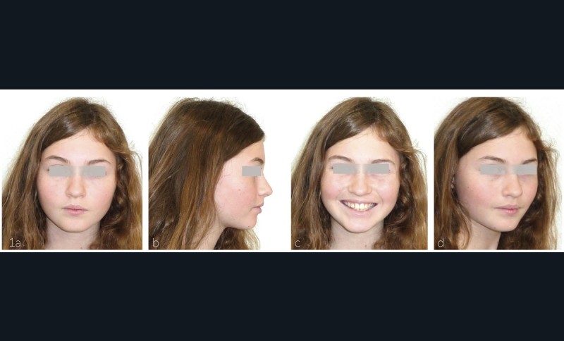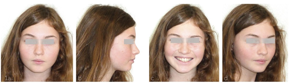 Lors de la première consultation, Arles âgée de 11 et demi, présente un visage harmonieux avec une légère diminution de l’étage inférieur et un profil convexe (fig. 1a-d). L’examen endobuccal (fig. 2a-f) révèle la présence d’une classe II division 1, avec une supraclusion incisive en relation avec une courbe de Spee mandibulaire marquée. Sur le plan purement dentaire, il n’y a pas d’encombrement, on note même de légers diastèmes interincisifs mandibulaires.