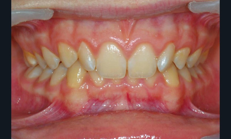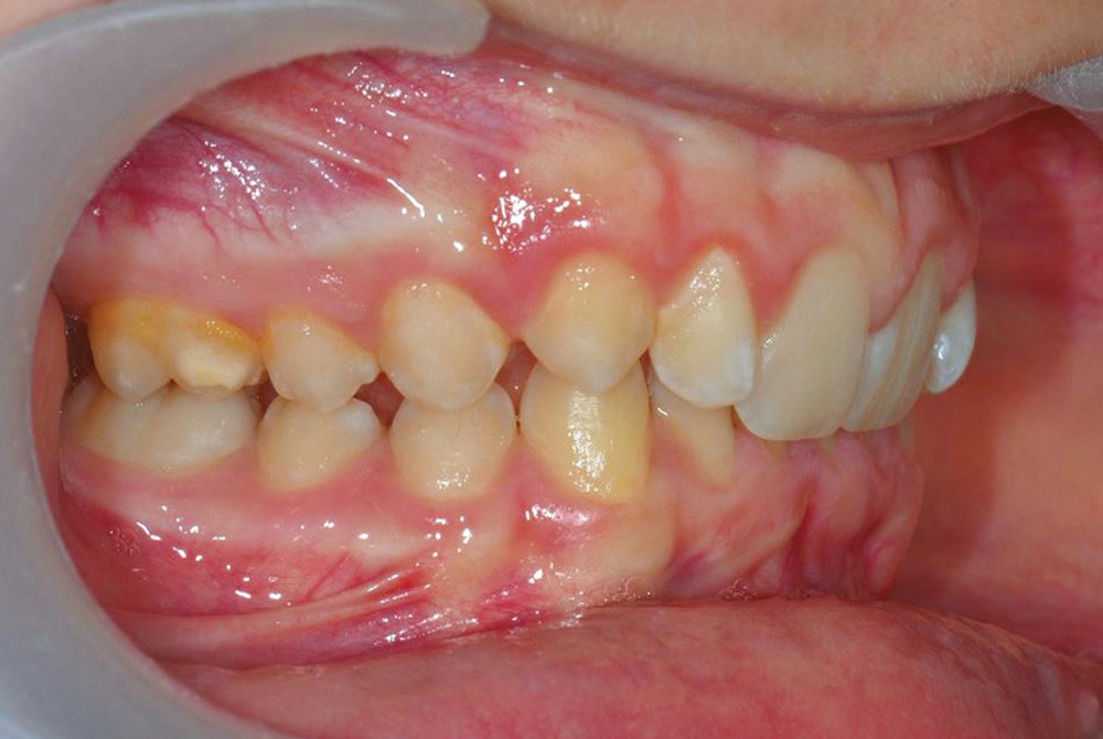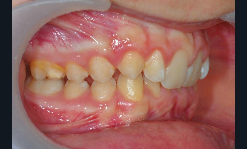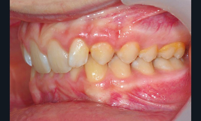 Son profil convexe s’inscrit dans un contexte de classe II squelettique par rétrognathie mandibulaire normodivergente sur un schéma de Classe II/2 avec supraclusion et encombrement modéré (fig. 1 à 7).