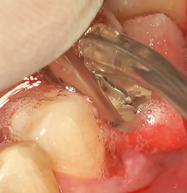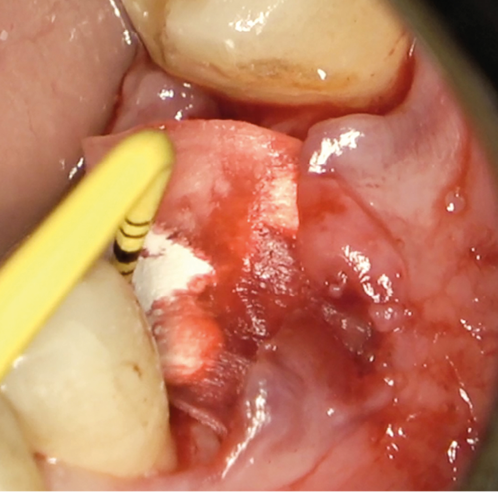 - Avulsion de la 36 et régénération osseuse guidée (ROG) réalisée en 2017 suite à une fracture de la dent et une infection